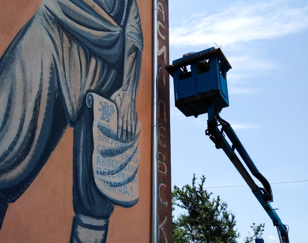 Historical murals Mural / Portrait of Hristo Botev in Tryavna, Bulgaria Close up of the face Close up of the signature Diagonal view of the mural Mural / Portrait of Vasil Levski commissioned by “Professional Gimnasium Vasil Levski” in Ihtiman, Bulgaria. Working on the letters Last touches Social Realism in Tryavna, Bulgaria Mural/Portrait of Aleksander Stamboliyski painted on top of the library door in Slavovitsa, Bulgaria – his births place. The successful project proposal sketch for the “Platex Ltd.” factory chimney located in Dryanovo, Bulgaria. Video of the finished mural The finished mural At the top of the finished mural A detail of the finished mural The giant portrait of Nikola Fichev, one of the three portraits painted at 45 meters high… Rope access muralism in progress Finishing the face of Methodius Finishing the face of Methodius Rope access muralism in progress Sketching at 35 meters high … Three of the rings of time are finished for the moment and the mural is currently 30 meters high. The next 15 meters will be painted in 2022 In the process of painting at 30 meters high Orpheus and Euridice Rainy day in the mountain Mural/Portrait of Charles Dickens Mural/Portrait of Charles Dickens Mural/Portrait of Charles Dickens (detail) The sketch Mural/Portrait of Fyodor Dostoevski Mural/Portrait of Fyodor Dostoevski (detail) Mural/Portrait of Fyodor Dostoevski Share this: Share on Facebook (Opens in new window) Facebook